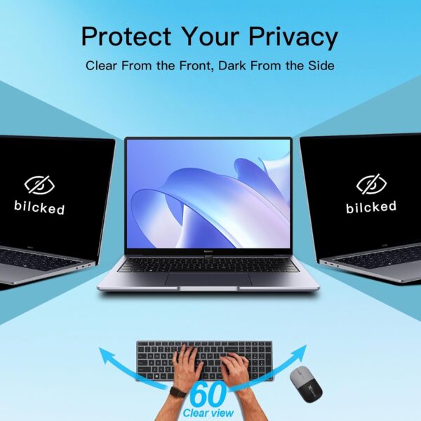 - Extrêmement haute définition : modelé en fonction de la taille réelle de l’écran 1:1, la taille est parfaitement assortie. La couche de transmission de lumière avec un matériau japonais avancé a un taux de transmission de lumière super élevé. Le filtre est anti-reflet et résistant aux rayures. Ainsi, tout cela vous permettra d’avoir un écran de confidentialité super haute définition pour ordinateur portable de 14 pouces avec une qualité d’image inégalée proche de l’image d’origine.